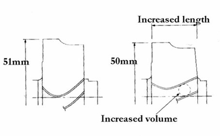 Apex seal lubrication has become a critical issue. In a race engine, oil supply to the rotor housing by means of injection was precisely monitored and controlled, whereas in the production unit, a larger amount is supplied, just to be on the safe side. Some of the lubricant is fed into the trochoid chamber through a metering nozzle. The previous nozzle's oil passage was 2.0 mm (0.08 in.) in diameter. Negative pressure created in the rotor chamber would cause all the oil within the nozzle to be sucked out. When the engine accelerated rapidly, oil supply could not keep up with the speed. To prevent oil starvation, the previous system supplied a larger amount of oil to be on the safe side. In the new metering nozzle, the passage diameter has been reduced to 0.08 mm (0.003 in.), halving its volume of 0.0005 L (0.03 cu. in.). A new rubber seal is also inserted to fill a gap within the nozzle body where oil used to be sidetracked. Now, there is still some oil left within the nozzle after each suction, so that the lubrication system responds to the apex seal's requirement.
